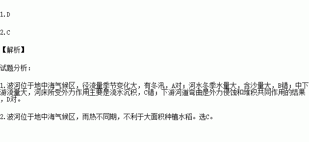 ÏÂͼΪ²¨ºÓÁ÷ÓòʾÒâͼ£¬²¨ºÓ£¨Í¼ÖÐRºÓ£©ÊÇÒâ´óÀû×î´óµÄºÓÁ÷£¬ºÓÁ÷Ñ´ÆÚ³¤£¬º¬É³Á¿½Ï´ó£¬ÏÂÓκӵÀÍäÇú£¬Ë®Á÷-RA9ºÓƽÔΪ¸Ã¹úÈ˿ڳÇÊм¯Öзֲ¼Çø£¬Á¸Ê³Ö÷²úÇø¡£¶Áͼ£¬Íê³É¸÷Ìâ¡£