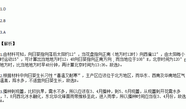 3.ÔÚÎÒ¹úÖ÷²úÇø²¥ÖÖÏòÈÕ¿ûµÄ×îÊÊÒËʱ¼äÊÇ