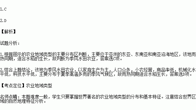 C.季风水田农业 D.商品谷物农业