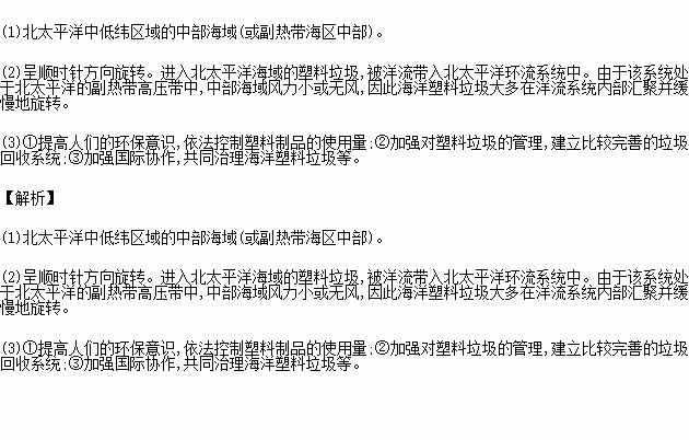 (2)指出“垃圾旋涡”旋转的方向,并简要分析说明大量塑料垃圾在甲海域聚集的主要原因。
