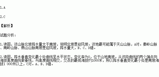 C.南坡海拔1 000米以上 D.北坡海拔1 000米以上