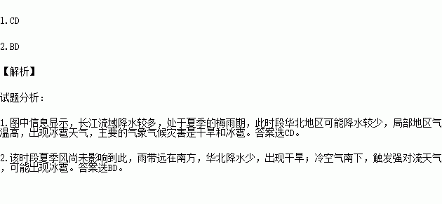 下图为某年我国局部地区5月中旬至7月上旬降水量分布示意图,读图回答问题。