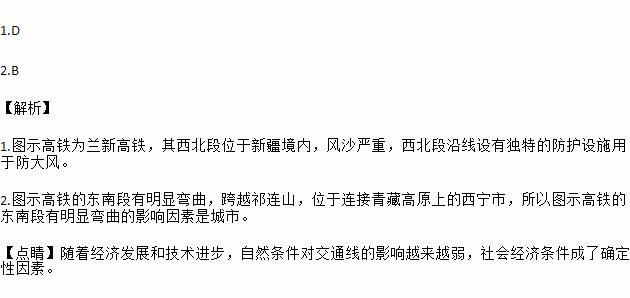 1.图示高铁的西北段沿线设有独特的防护设施,推测其用途是( )