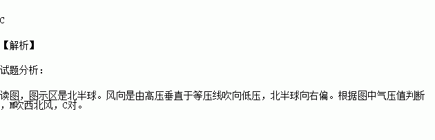 下图是“某区域某时地面天气简图”。图中M地的风向是