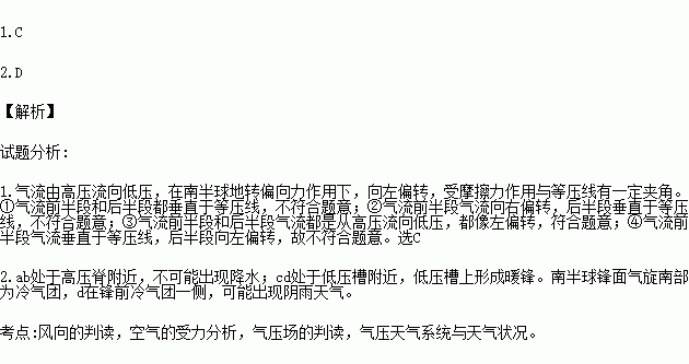 2.此时,图中a、b、c、d四地最有可能出现阴雨天气的是( )