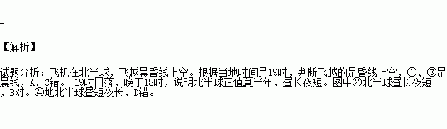 一架在北半球飞行的飞机,飞越晨昏线上空时,当地为8日19时,回答问题。