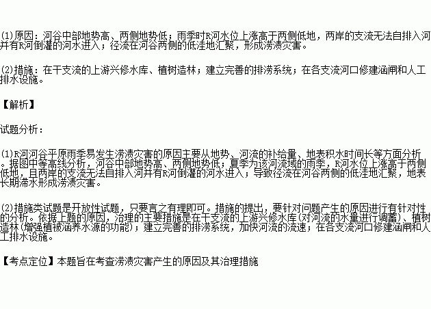 (1)简析R河河谷平原雨季易发生涝渍灾害的原因。