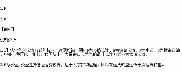 1.如果我国从中亚大量进口天然气,最佳运输方式应为( )