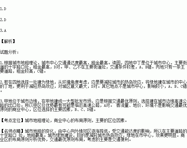3.甲地建成一大型批发市场,其区位优势最有可能是