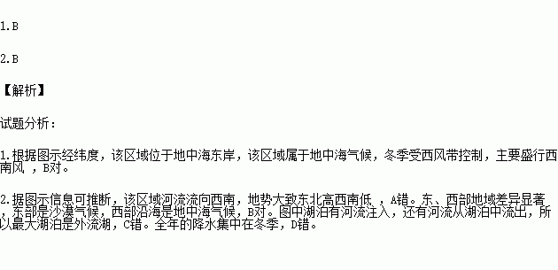 1.据图示信息可知,该区域的冬季主要盛行