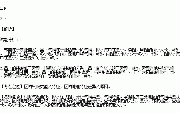 2.关于索契与昌平地理特征的对比,叙述正确的是