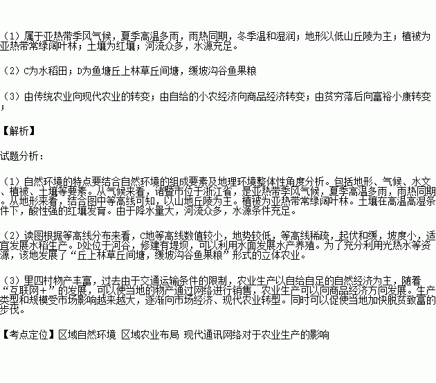 (2)若A地是天然林,B地是香榧林及果园,那么C地可能是 ;D地可能是 ;