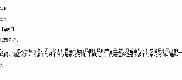1.若在该城市布局一化工厂,其最佳方位是