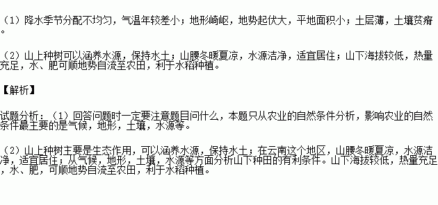 (1)云南省不利于农业生产的自然条件有哪些?
