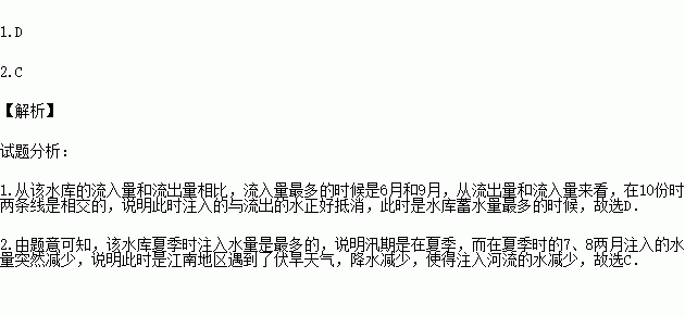 下图为我国某水库流入水量与流出水量年内变化情况,读图回答下列问题。