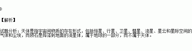 下列不属于天体的是 ( )