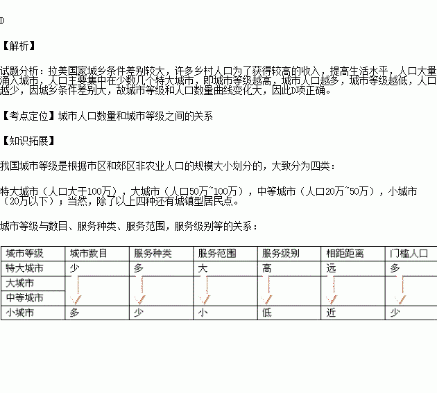 2012Äê11ÔÂ28ÈÕ£¬Àî¿ËÇ¿×ÜÀíÖ¸³ö£¬ÎÒ¹úδÀ´¼¸Ê®Äê×î´óµÄ·¢Õ¹Ç±Á¦ÔÚ³ÇÕò»¯¡£µ«³ÇÕò»¯ÒªÎüÈ¡ÀÃÀ¹ú¼ÒµÄ¾Ñé½Ìѵ£¬°¢¸ùÍ¢¡¢Ä«Î÷¸çµÈÀÃÀ¹ú¼Ò³ÇÕò»¯»ûÐη¢Õ¹£¬³ÇÕòÈË¿ÚÖ÷Òª¼¯ÖÐÔÚÉÙÊý¼¸¸öÌØ´ó³ÇÊС£¶Á±í1¡°ÀÃÀÖ÷Òª¹ú¼Ò³ÇÊл¯³Ì¶È±í¡±£¬ÏÂÃæËÄ·ùͼÖУ¬ÄÜÕýÈ··´Ó³ÀÃÀ¹ú¼Ò³ÇÊÐÈË¿ÚÊýÁ¿ºÍ³ÇÊеȼ¶¹ØÏµµÄÊÇ