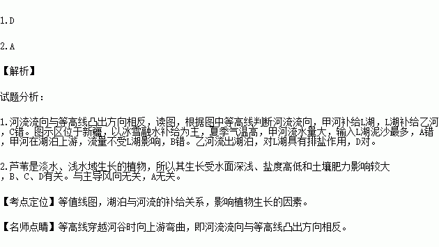 1.正确描述甲、乙两河与L湖相互关系的是