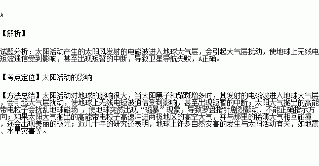 A.卫星导航失败 B.风力电厂增产 C.生活耗能降低 D.人口迁移加快