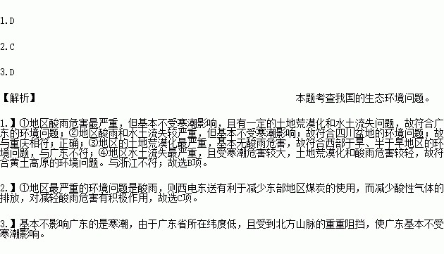 3.四种环境问题中,有一种基本不影响广东,其原因是