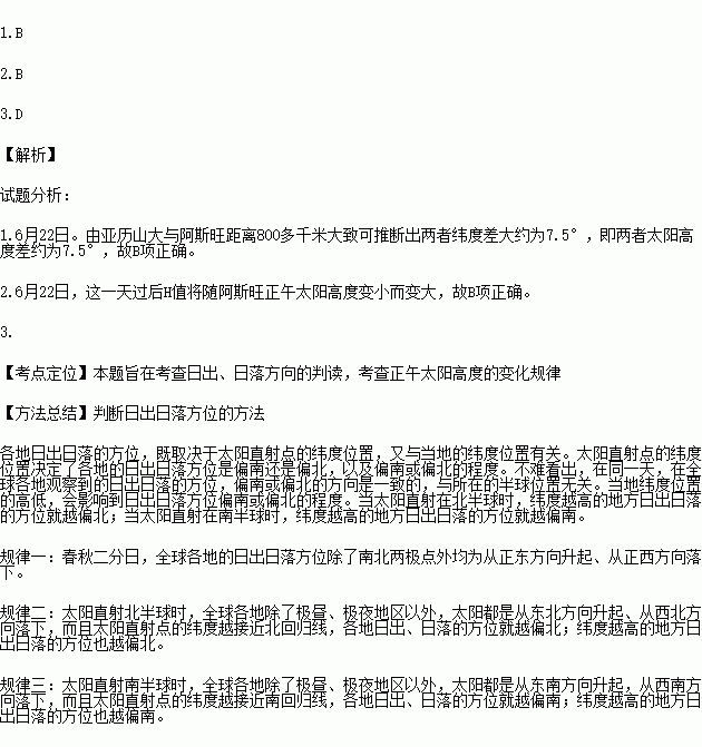 1.亚历山大距离阿斯旺800多千米,推测H值大约为( )