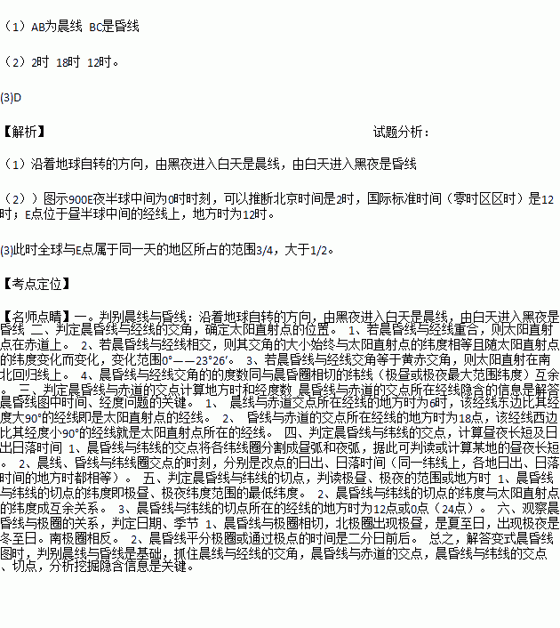 (1)分别写出图示中的晨线和昏线。