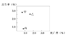 读甲、乙、丙三国人口出生率与死亡率示意图,回答题。![]()