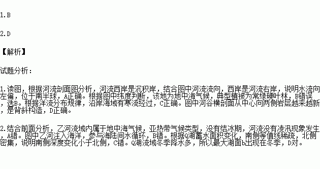 C.Q湖南侧深度变化大于北侧 D.Q湖最大湖面b出现在冬季