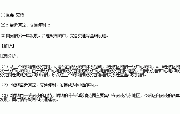 (2)Èý¸ö³ÇÕòÖУ¬________¹æÄ£¿ÉÄܽϴ󣬴ÓͼÖзÖÎö£¬Æä¹æÄ£´óµÄÔÒò¿ÉÄÜÊÇ________£¬Ä³ÒøÐÐÒªÔÚÈý¸ö³ÇÕòÖн¨ÉèÒ»¸öÖ§ÐУ¬ÄãÈÏΪ×îÓпÉÄÜÑ¡Ôñ________¡£ (3)¸ù¾Ýͼ·ÖÎö£¬C³ÇÕòδÀ´µÄ·¢Õ¹·½ÏòÊÇʲô£¿Ó¦¸Ã²ÉȡʲôÑùµÄ´ëÊ©£¿
