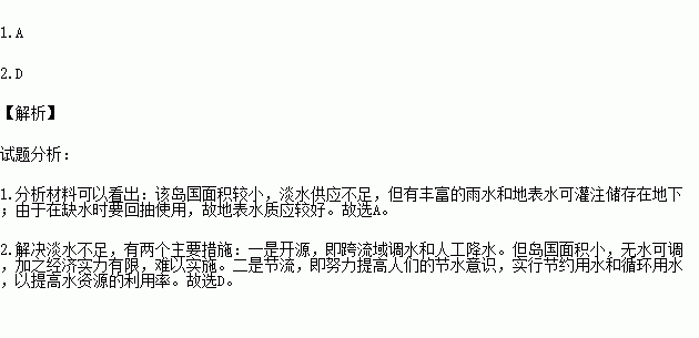 2.为解决淡水供给不足问题,现阶段该国可以采取的措施有( )