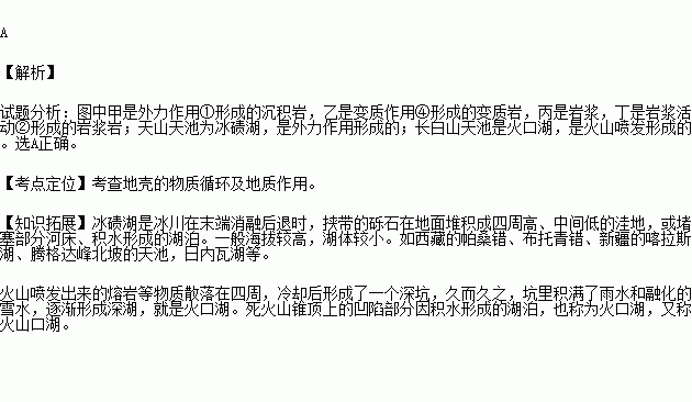 塑造天山天池和长白山天池的主要地质作用对应图b的相关数字序号分别为