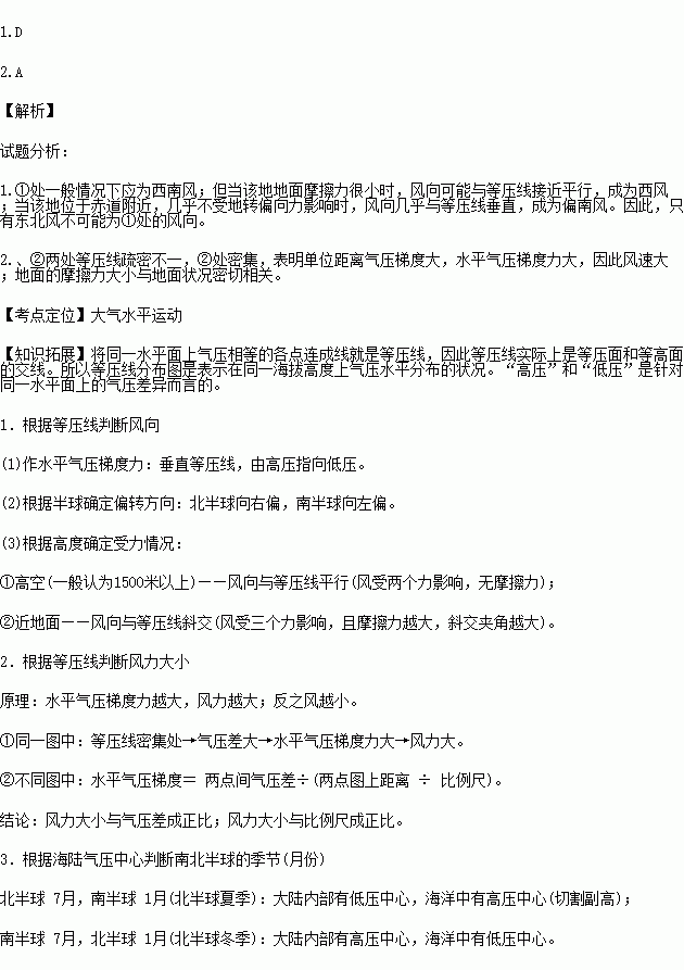 下图是北半球某地近地面等压线分布示意图。读图,完成下列问题。