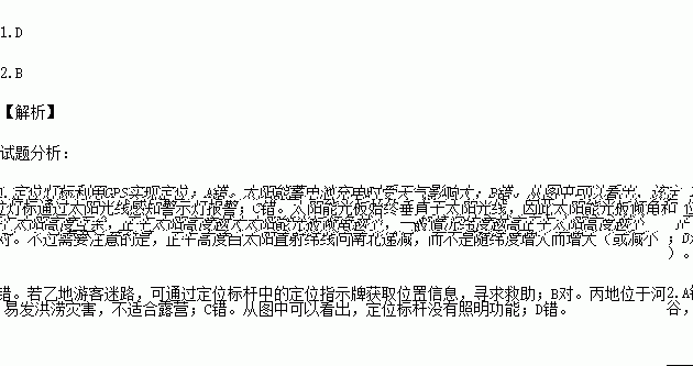 下面左图示意野外应急救援太阳能辅助定位灯标,图中太阳能光板与水平地面的夹角称为太阳能光板倾角。右图为某地等高线地形图。读图,回答以下问题。