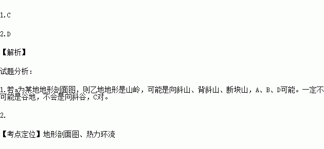 1.若a为某地地形剖面图,则乙地地形一定不可能是 ( )