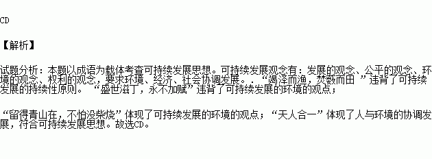 可持续发展思想在中国源远流长,下列言论中蕴含可持续发展思想的是( )