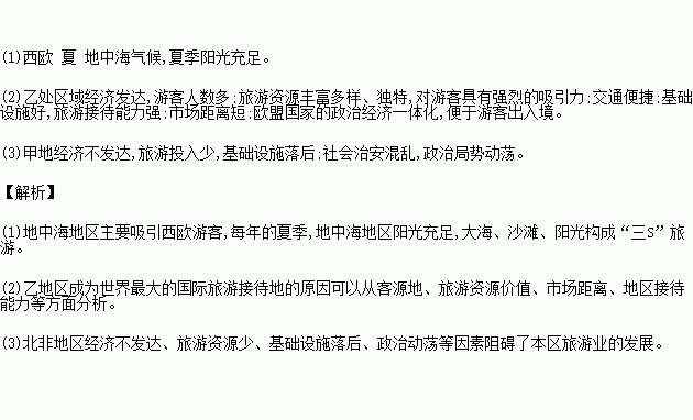 (2)简要分析乙地区成为世界上最大的国际旅游接待地之一的原因。