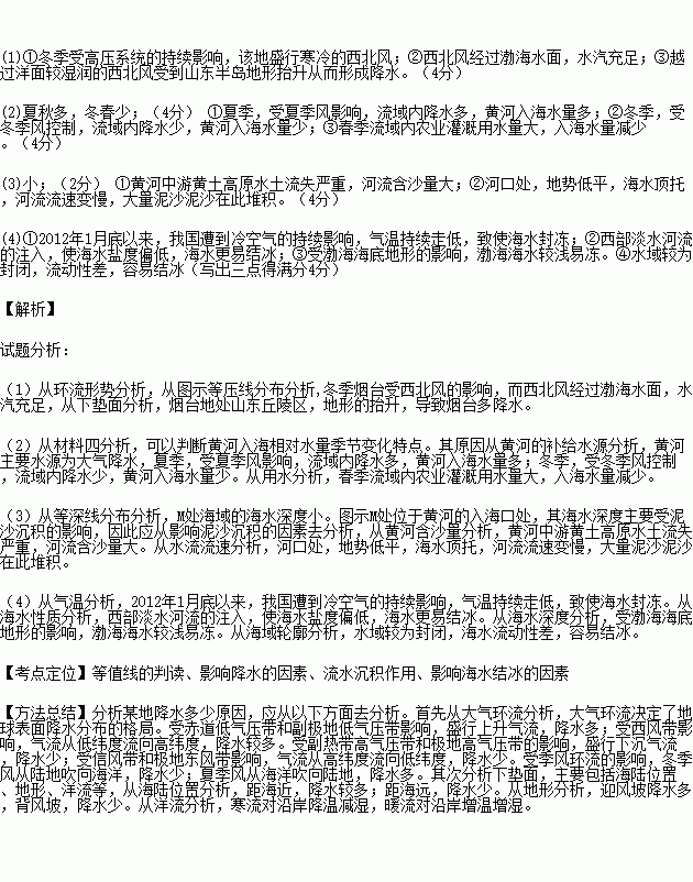 £¨2£©¾Ý²ÄÁÏËļ°Ëùѧ֪ʶ£¬·ÖÎö»ÆºÓÈ뺣Ïà¶ÔË®Á¿¼¾½Ú±ä»¯Ìص㼰ÔÒò¡££¨8·Ö£©