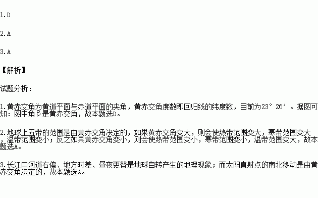 3.地球上由于黄赤交角的存在,产生的现象是( )