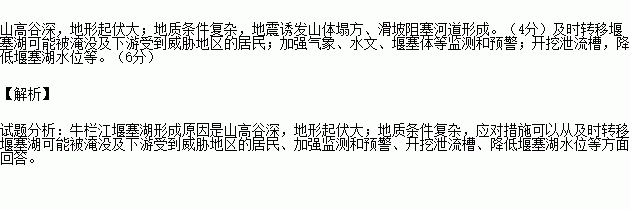 从地形、地质条件分析牛栏江堰塞湖形成原因及堰塞湖形成后的应对措施。