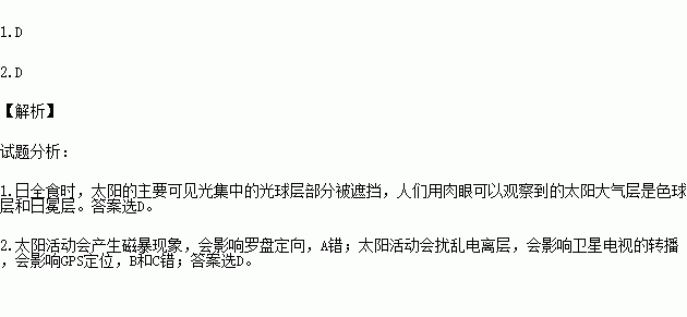 1.日全食时,人们用肉眼可以观察到的太阳大气层是( )