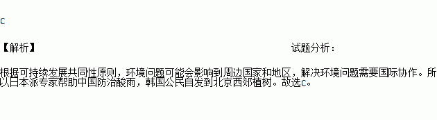 日本派专家帮助中国防治酸雨,韩国公民自发组织到北京西郊植树,这说明了 ( )