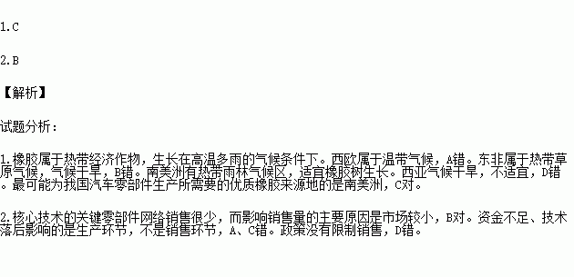 1.下列地区中,最可能为我国汽车零部件生产所需要的优质橡胶来源地的是