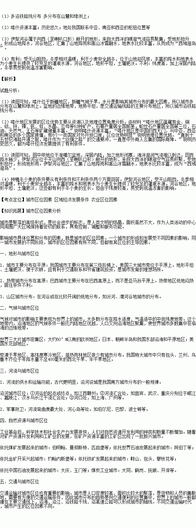 £¨1£©¾Ýͼ˵Ã÷¿¦Ê²ËùÔÚµØÇø³ÇÊзֲ¼ÌصãµÄÌØµã¡£
