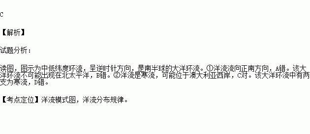 洋流是指海水沿着一定方向稳定的大规模流动,对全球的热量平衡起着重要作用。读图回答第18题。