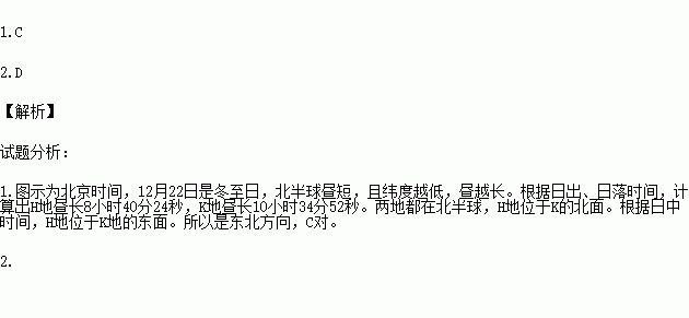 读H、K两地12月22日日出日落时刻表(北京时间)。完成下列下列问题。