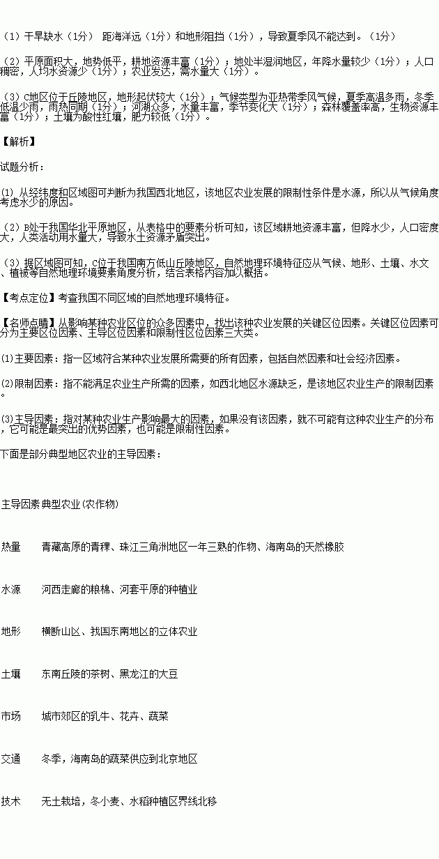 (1)从气候方面分析,A地区农业生产的限制性因素及其形成原因。(4分)