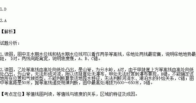 1.图中①②③④四处湖岸坡度最大的是