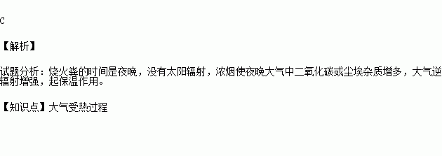 C、浓烟使夜晚的大气逆辐射增强,起到保温作用