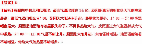 D.9︰00 - 11: 00气温不断上升,原因是地面辐射不断增强