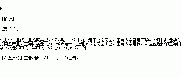 ①家具厂 ②印刷厂 ③炼铝厂 ④微电子工业